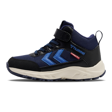 Dankzij het hummelTEX-membraan van ripstop nylon en een synthetisch bovenwerk houdt de ROOT TEX JR de voetjes van je kleintje comfortabel, droog en goed geventileerd. Deze hummel-sneakers® zijn geïnspireerd op wandelschoenen en hebben een EVA-tussenzool met een rubberen buitenzool voor een lichte en comfortabele loop. De warme voering van deze laarzen en de elastische veters met een op maat gesneden klittenbandsluiting zorgen te allen tijde voor de perfecte pasvorm. Deze sneakers hebben een normale wijdte. Bij het kiezen van een kinderschoenmaat raden we aan om 1-1,5 cm groeiruimte in deze schoenen te laten. Bekijk voor meer informatie onze maattabel.